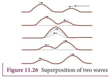Principle of Superposition of WavesAt any point of the medium, the combined effect is given by the principle of superposition.This principle states that if at any point two waves of the same kind r...